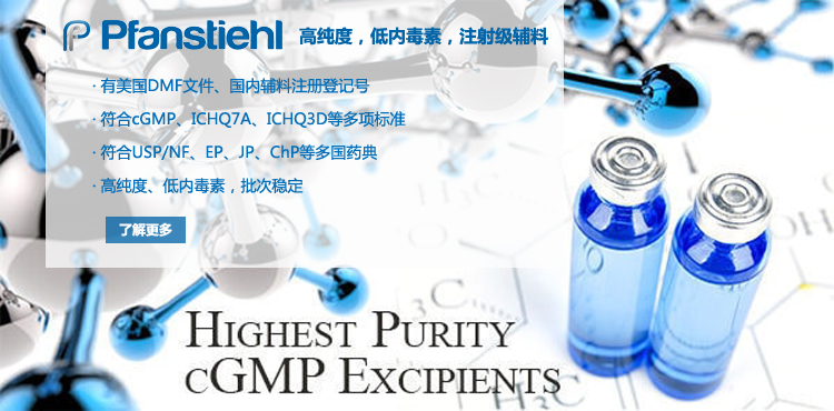 “熱烈祝賀Pfanstiehl的注射級甘氨酸Glycine(G-140)喜獲CDE登記號F20250000403, 這是Pfanstiehl產品獲得的第18個CDE登記號!”甘氨酸在醫藥輔料制劑中應用廣泛,, 可作為緩沖劑,增溶劑,穩定劑等,具有諸多優勢。Pfanstiehl秉承一貫高品質理念,為滿足全球生物制藥行業對于高品質甘氨酸的需求,隆重推出的注射級甘氨酸Glycine (G-140), 具有超高純度,超低內毒素,超低金屬殘留的特點,單獨檢測29種金屬離子,并且新增DNA,RNA,DNA酶,RNA酶和脂肪酶,亞硝酸鹽等多項質量指標的檢測,符合多國藥典規定(USP, EP, BP, JPE, ChP),可用于生物治療性藥物和疫苗的生產。產品信息:· 產品名稱:Glycine, High Purity, Low Endotoxin, Low Metals, USP, EP, BP, JPE, ChP (G-140)· 中文名稱:甘氨酸· 分子式:C2H5NO2· 分子量:75.07 g / mol· CAS號:56-40-6· 產品貨號:G-140產品特點: · 超高純度,超低內毒素,超低微生物含量,超低金屬雜質殘留· 質量指標新增DNA,RNA,DNA酶,RNA酶,脂肪酶和亞硝酸鹽檢測· 符合多國藥典:USP, EP, BP, JPE, ChP· 符合ICH Q3D標準· 符合GMP標準· 已獲DMF和CDE登記號 產品應用:· 緩沖劑· 穩定劑· 增溶劑如果您對Pfanstiehl注射級別Glycine G-140感興趣,歡迎聯系Pfanstiehl 中國區代理商北京西美杰科技有限公司獲得如下詳細的產品概況說明文件和測試樣品。Pfanstiehl Inc.最新產品系列如下,歡迎聯系北京西美杰科技有限公司獲取100g裝免費樣品。北京西美杰科技有限公司為Pfanstiehl中國代理,為客戶提供完善的技術支持與售后服務。歡迎撥打西美杰客服電話400-050-4006或者登陸網站www_xmjsci_com.majingduo.com了解更多信息。 更多>